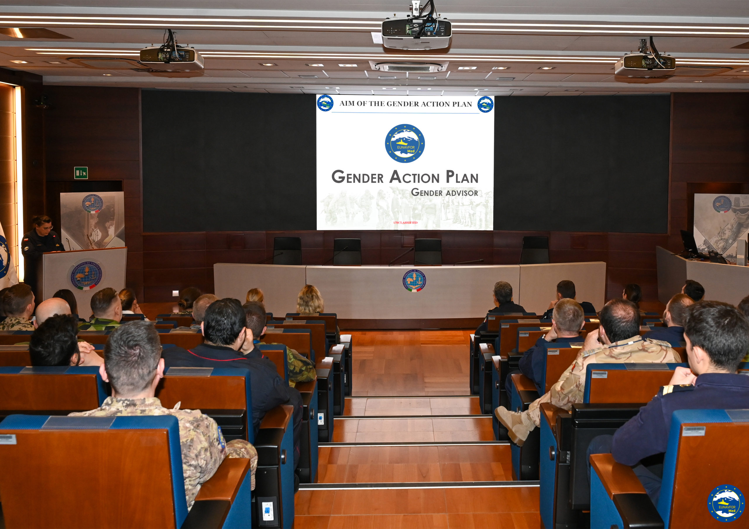 The briefing, organized by the Gender Advisor (GENAD), was attended by the Operation Commander, RAdm Valentino RINALDI, Deputy Commander, RAdm Guillaume FONTARENSKY and Operational Headquarters staff and provided an interesting moment of reflection and deepening with the aim of strengthening and promoting gender issues for the enforcement of human rights, non-discrimination and gender equality.